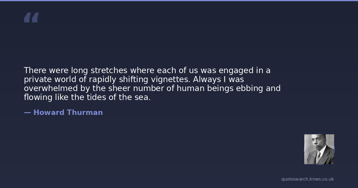 Howard Thurman was a 19th-century American theologian. Howard Washington Thurman was an American author, philosopher, minister, theologian, Christian mystic, educator, and civil rights leader. Read more on Wikipedia →