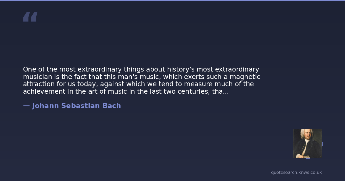One of the most extraordinary things about history's most extraordinary musician is the fact that this man's music, which exerts such a magnetic attraction for us today, against which we tend to measure much of the achievement in the art of music in the last two centuries, that this music had absolutely no effect on either the musicians or the public of his own day. And the strange thing about Bach is that he doesn't at all fit our conception of the misunderstood genius who was years ahead of his time. He was certainly misunderstood, but not because he was ahead of his time, rather because according the musical disposition of that day, he was generations behind it.