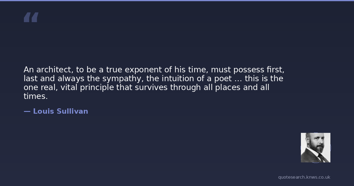 An architect, to be a true exponent of his time, must possess first, last and always the sympathy, the intuition of a poet … this is the one real, vital principle that survives through all places and all times.