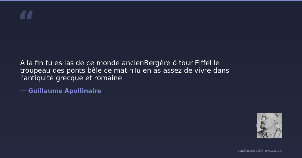 A la fin tu es las de ce monde ancienBergère ô tour Eiffel le troupeau des ponts bêle ce matinTu en as assez de vivre dans l'antiquité grecque et romaine