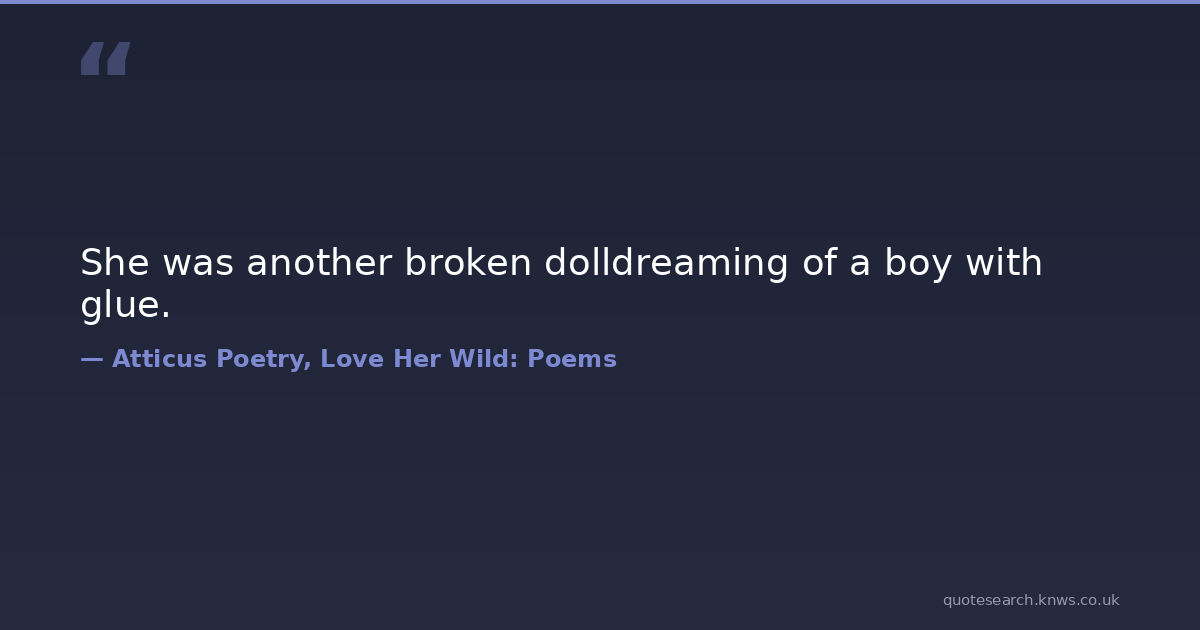 She was another broken dolldreaming of a boy with glue. atticus atticus-poetry atticuspoetry her instagram love love-her-wild poems poetry quotes wild Download Image Share on X Share on Facebook Copy Link