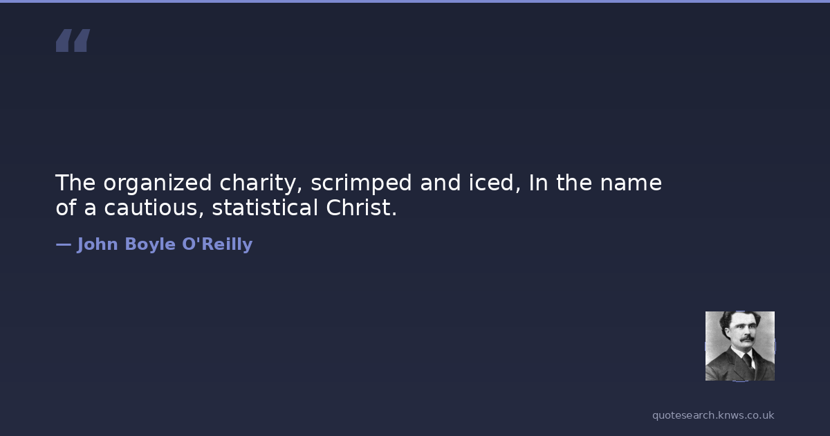 The organized charity, scrimped and iced, In the name of a cautious, statistical Christ.
