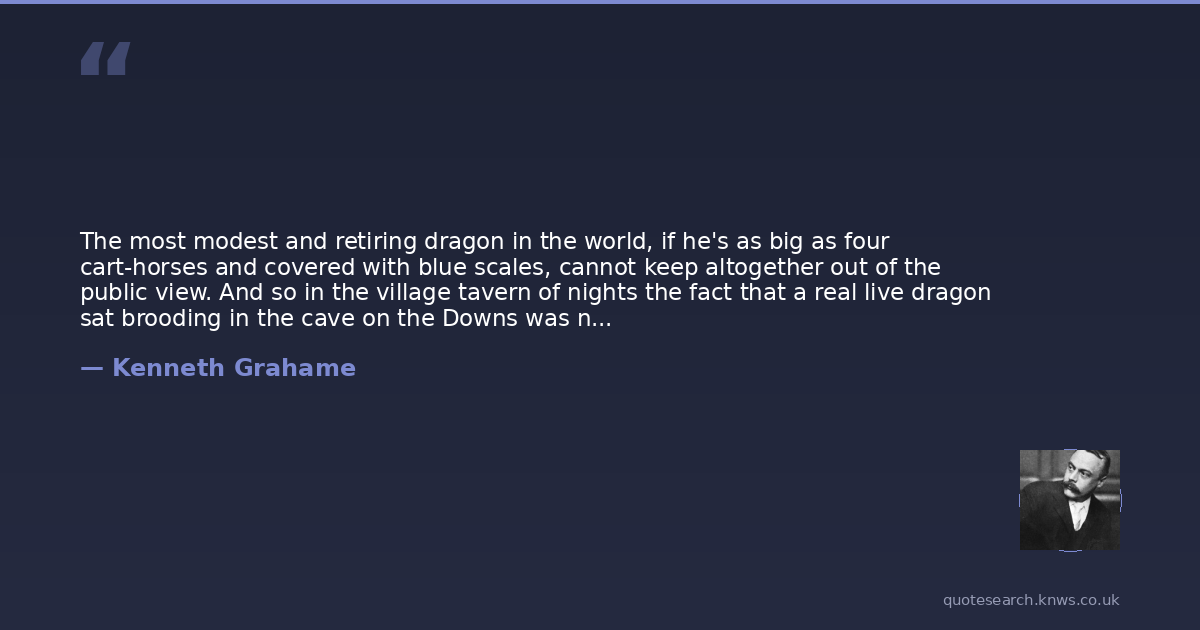 The most modest and retiring dragon in the world, if he's as big as four cart-horses and covered with blue scales, cannot keep altogether out of the public view. And so in the village tavern of nights the fact that a real live dragon sat brooding in the cave on the Downs was naturally a subject for talk.