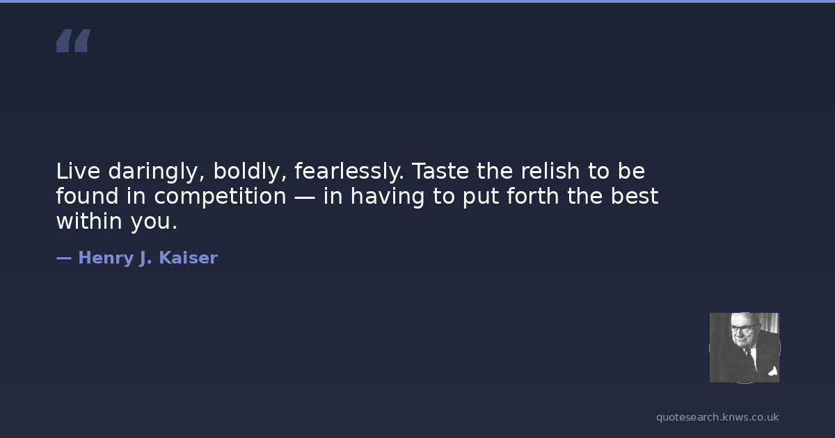 Live daringly, boldly, fearlessly. Taste the relish to be found in competition — in having to put forth the best within you.