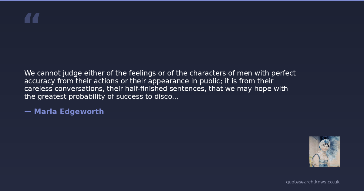 We cannot judge either of the feelings or of the characters of men with perfect accuracy from their actions or their appearance in public; it is from their careless conversations, their half-finished sentences, that we may hope with the greatest probability of success to discover their real characters.