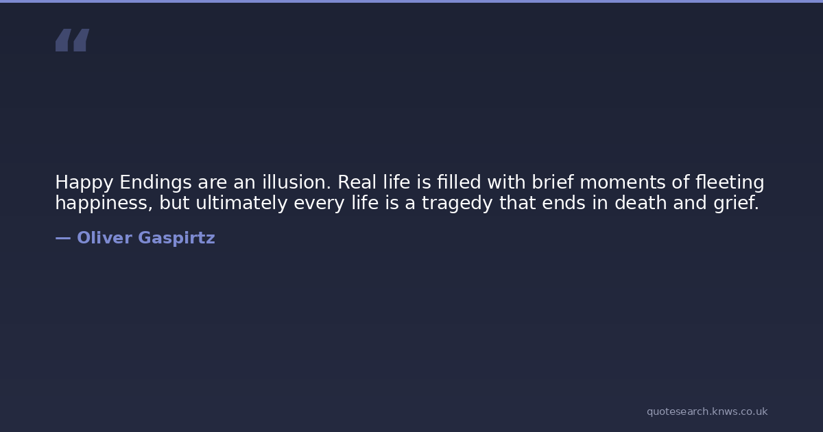 Happy Endings are an illusion. Real life is filled with brief moments of fleeting happiness, but ultimately every life is a tragedy that ends in death and grief.