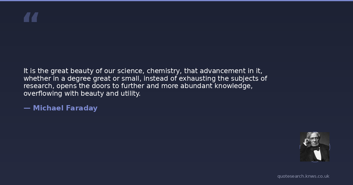 It is the great beauty of our science, chemistry, that advancement in it, whether in a degree great or small, instead of exhausting the subjects of research, opens the doors to further and more abundant knowledge, overflowing with beauty and utility.