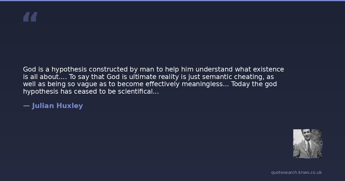 God is a hypothesis constructed by man to help him understand what existence is all about.... To say that God is ultimate reality is just semantic cheating, as well as being so vague as to become effectively meaningless... Today the god hypothesis has ceased to be scientifically tenable, has lost its explanatory value and is becoming an intellectual and moral burden to our thought. It no longer convinces or comforts, and its abandonment often brings a deep sense of relief. Many people assert that this abandonment of the god hypothesis means the abandonment of all religion and all moral sanctions. This is simply not true. But it does mean, once our relief at jettisoning an outdated piece of ideological furniture is over, that we must construct some thing to take its place.