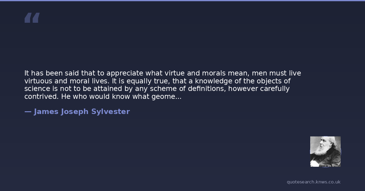 It has been said that to appreciate what virtue and morals mean, men must live virtuous and moral lives. It is equally true, that a knowledge of the objects of science is not to be attained by any scheme of definitions, however carefully contrived. He who would know what geometry is, must venture boldly into its depths and learn to think and feel as a geometer.