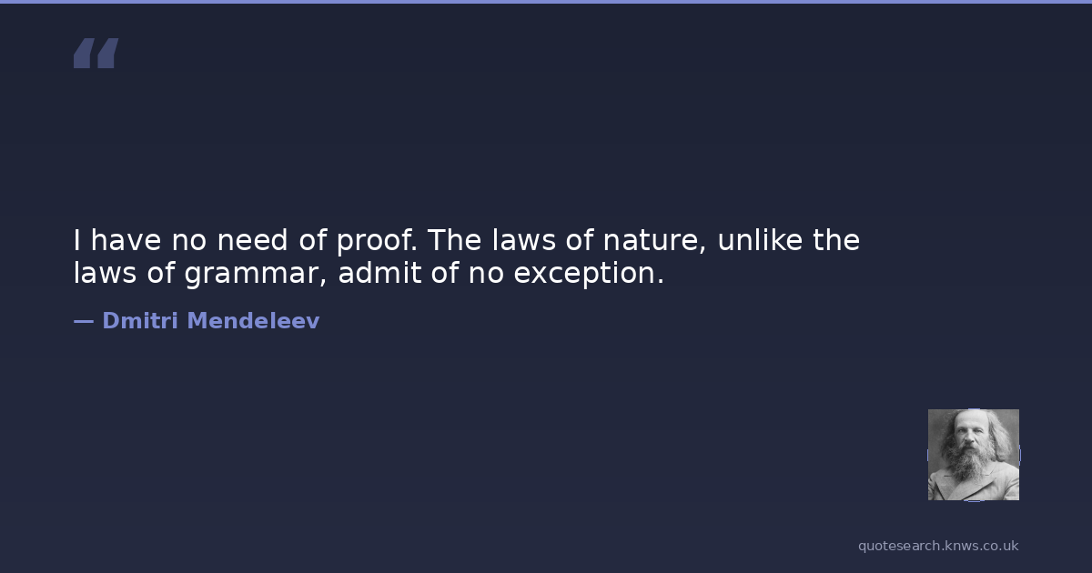 I have no need of proof. The laws of nature, unlike the laws of grammar, admit of no exception.
