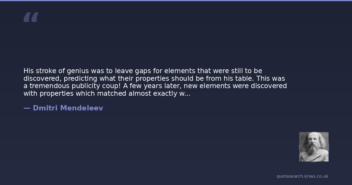 His stroke of genius was to leave gaps for elements that were still to be discovered, predicting what their properties should be from his table. This was a tremendous publicity coup! A few years later, new elements were discovered with properties which matched almost exactly with Mendeleev's predictions - the case was won...