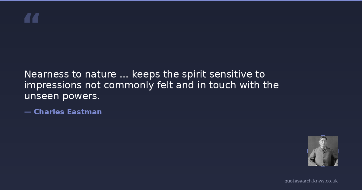 Nearness to nature ... keeps the spirit sensitive to impressions not commonly felt and in touch with the unseen powers.