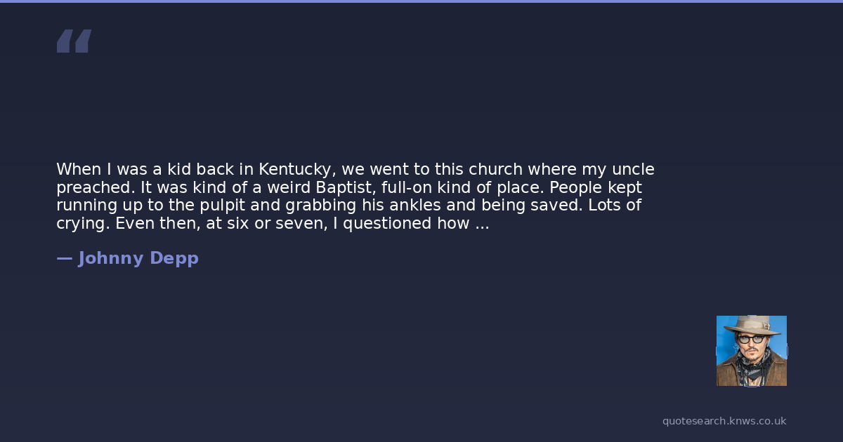 When I was a kid back in Kentucky, we went to this church where my uncle preached. It was kind of a weird Baptist, full-on kind of place. People kept running up to the pulpit and grabbing his ankles and being saved. Lots of crying. Even then, at six or seven, I questioned how pure the emotion could be if it were on such display.