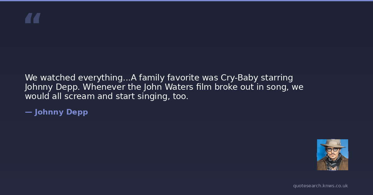 We watched everything...A family favorite was Cry-Baby starring Johnny Depp. Whenever the John Waters film broke out in song, we would all scream and start singing, too.