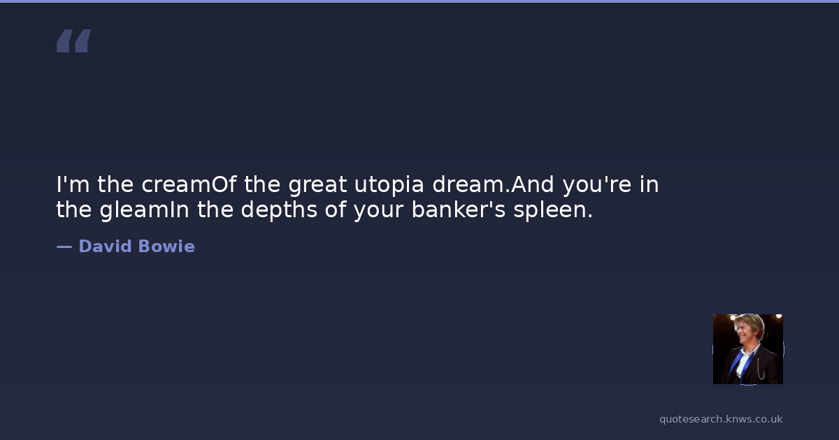 I'm the creamOf the great utopia dream.And you're in the gleamIn the depths of your banker's spleen.