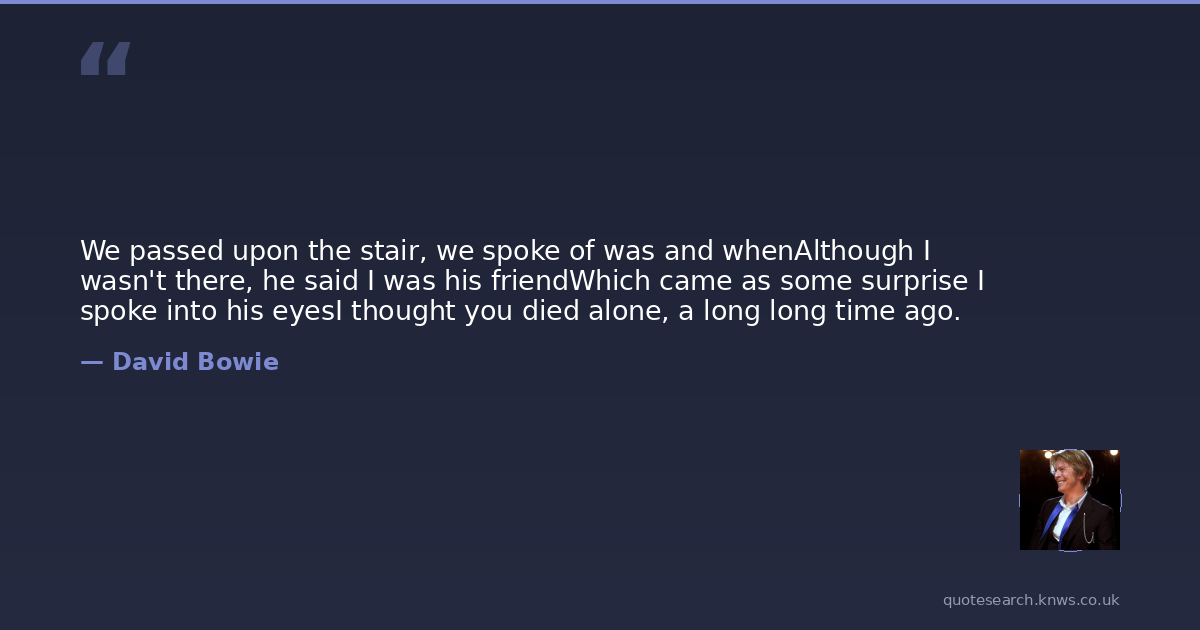 We passed upon the stair, we spoke of was and whenAlthough I wasn't there, he said I was his friendWhich came as some surprise I spoke into his eyesI thought you died alone, a long long time ago.