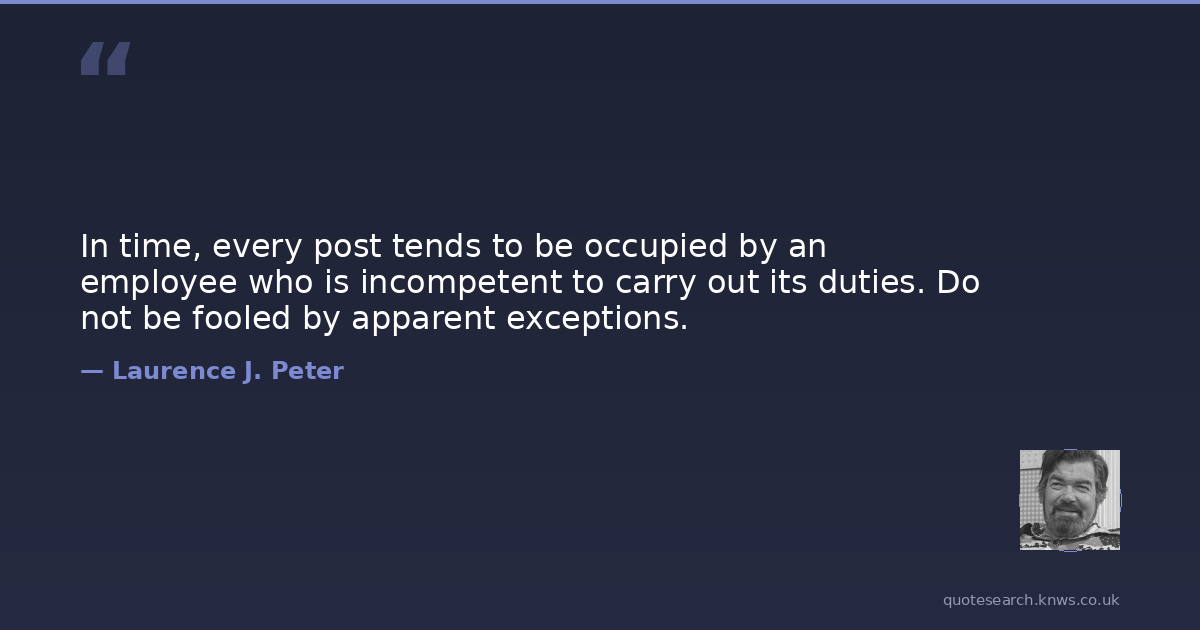 In time, every post tends to be occupied by an employee who is incompetent to carry out its duties. Do not be fooled by apparent exceptions.
