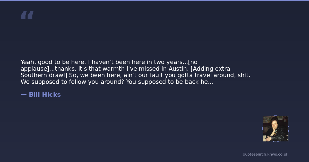 Yeah, good to be here. I haven't been here in two years...[no applause]...thanks. It's that warmth I've missed in Austin. [Adding extra Southern drawl] So, we been here, ain't our fault you gotta travel around, shit. We supposed to follow you around? You supposed to be back here. What are you doin', where are you?