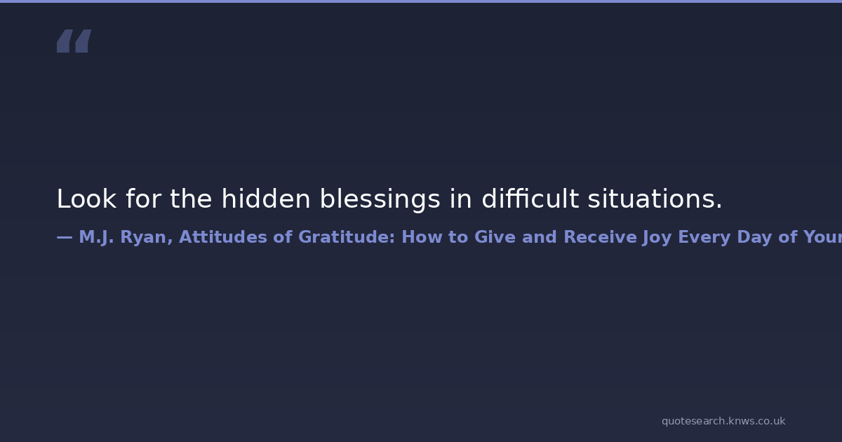 Look for the hidden blessings in difficult situations. quotes quotes-to-live-by Download Image Share on X Share on Facebook Copy Link