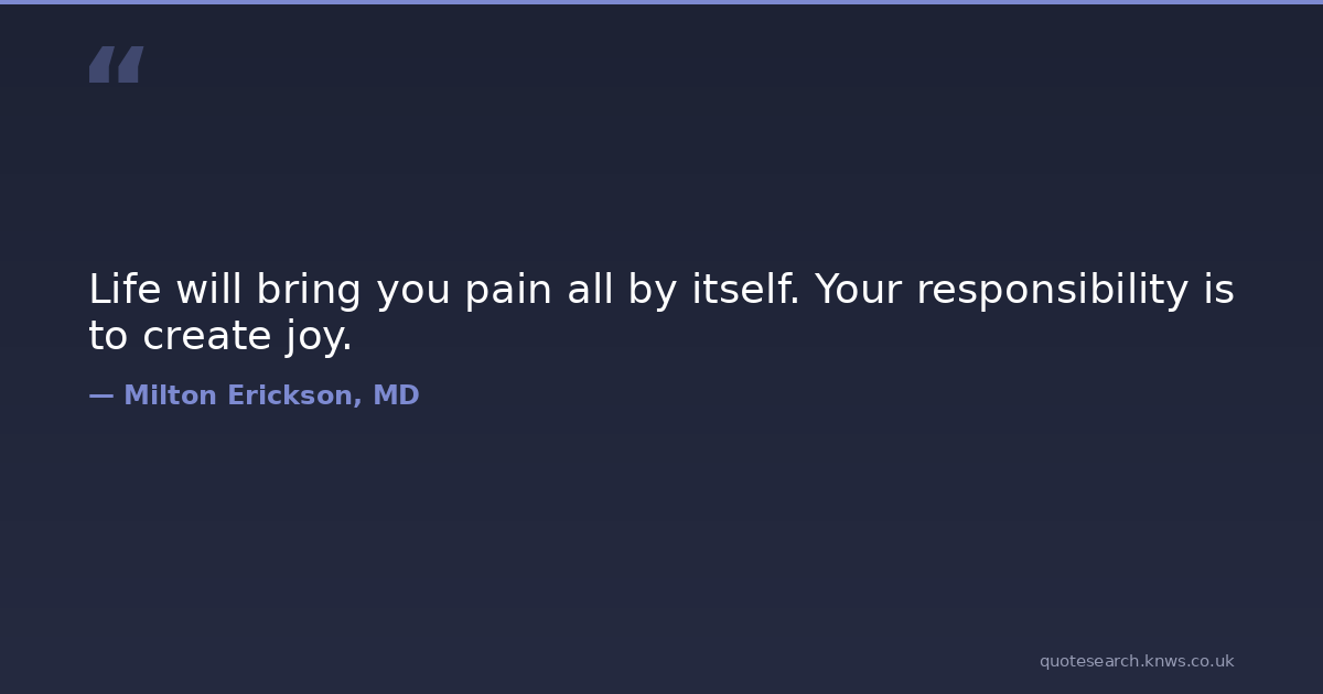 Life will bring you pain all by itself. Your responsibility is to create joy. quotes quotes-about-life quotes-to-live-by Download Image Share on X Share on Facebook Copy Link