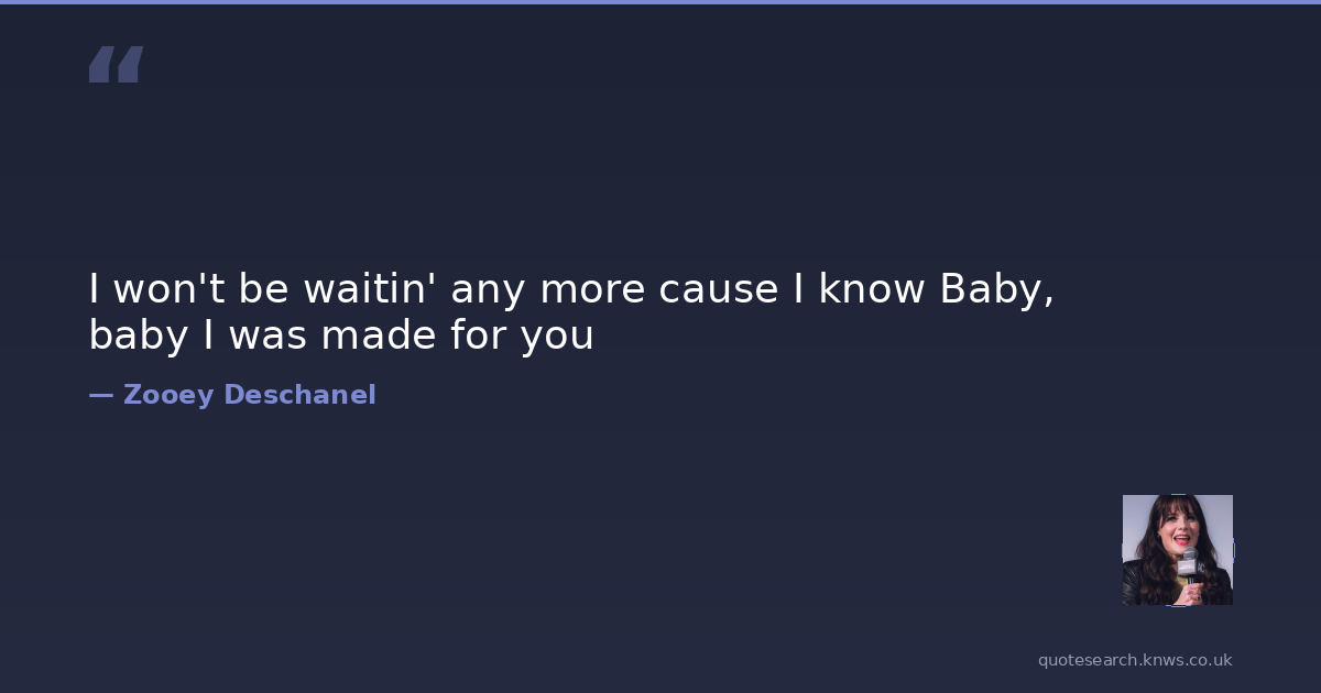 I won't be waitin' any more cause I know Baby, baby I was made for you