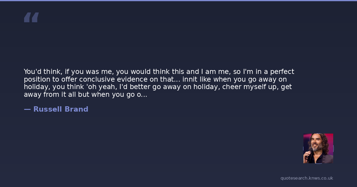 You'd think, if you was me, you would think this and I am me, so I'm in a perfect position to offer conclusive evidence on that... innit like when you go away on holiday, you think 'oh yeah, I'd better go away on holiday, cheer myself up, get away from it all but when you go on holiday, you're there, so it's shit!