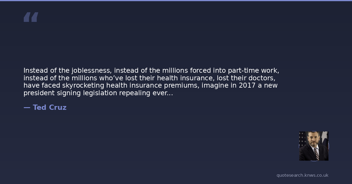 Instead of the joblessness, instead of the millions forced into part-time work, instead of the millions who’ve lost their health insurance, lost their doctors, have faced skyrocketing health insurance premiums, imagine in 2017 a new president signing legislation repealing every word of Obamacare.