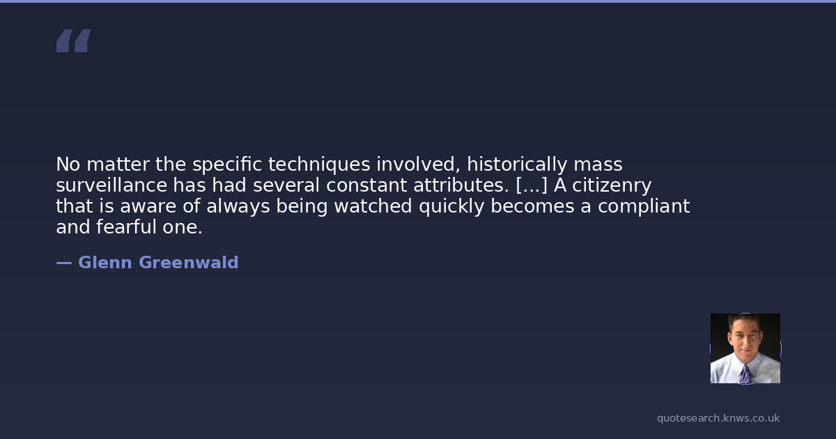 No matter the specific techniques involved, historically mass surveillance has had several constant attributes. [...] A citizenry that is aware of always being watched quickly becomes a compliant and fearful one.