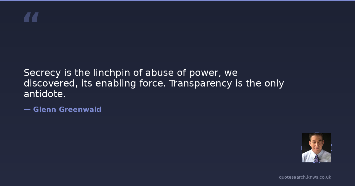 Secrecy is the linchpin of abuse of power, we discovered, its enabling force. Transparency is the only antidote.