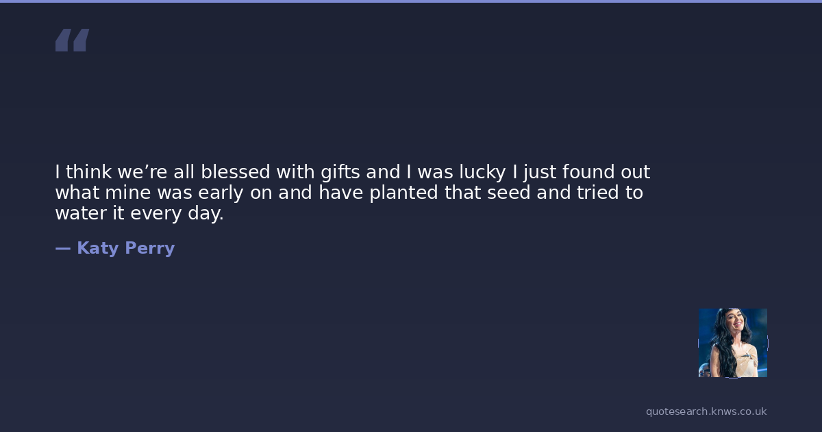 I think we’re all blessed with gifts and I was lucky I just found out what mine was early on and have planted that seed and tried to water it every day.