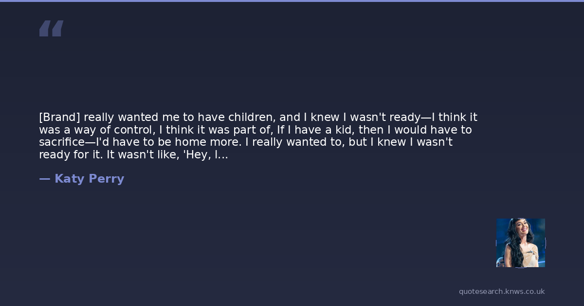 [Brand] really wanted me to have children, and I knew I wasn't ready—I think it was a way of control, I think it was part of, If I have a kid, then I would have to sacrifice—I'd have to be home more. I really wanted to, but I knew I wasn't ready for it. It wasn't like, 'Hey, let's have a kid because we're in love.