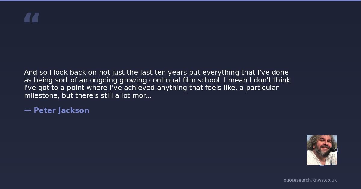 And so I look back on not just the last ten years but everything that I've done as being sort of an ongoing growing continual film school. I mean I don't think I've got to a point where I've achieved anything that feels like, a particular milestone, but there's still a lot more to learn and hopefully a lot more films to make.