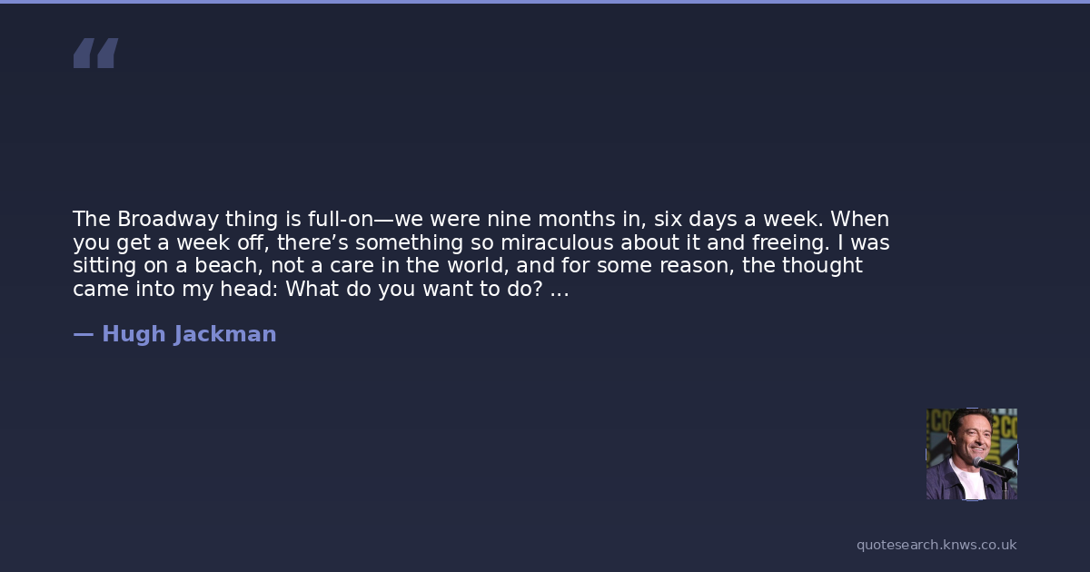 The Broadway thing is full-on—we were nine months in, six days a week. When you get a week off, there’s something so miraculous about it and freeing. I was sitting on a beach, not a care in the world, and for some reason, the thought came into my head: What do you want to do? And the first two things had nothing to do with work—then literally, I thought: Deadpool-Wolverine. I want to do that movie. That’s what I want.