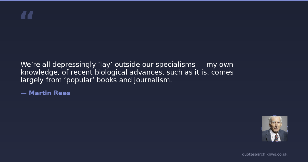 We’re all depressingly ‘lay’ outside our specialisms — my own knowledge, of recent biological advances, such as it is, comes largely from ‘popular’ books and journalism.
