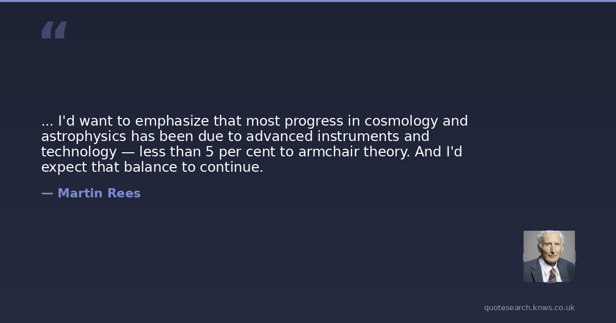 ... I'd want to emphasize that most progress in cosmology and astrophysics has been due to advanced instruments and technology — less than 5 per cent to armchair theory. And I'd expect that balance to continue.