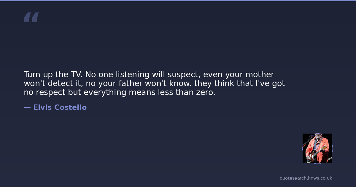 Turn up the TV. No one listening will suspect, even your mother won't detect it, no your father won't know. they think that I've got no respect but everything means less than zero.