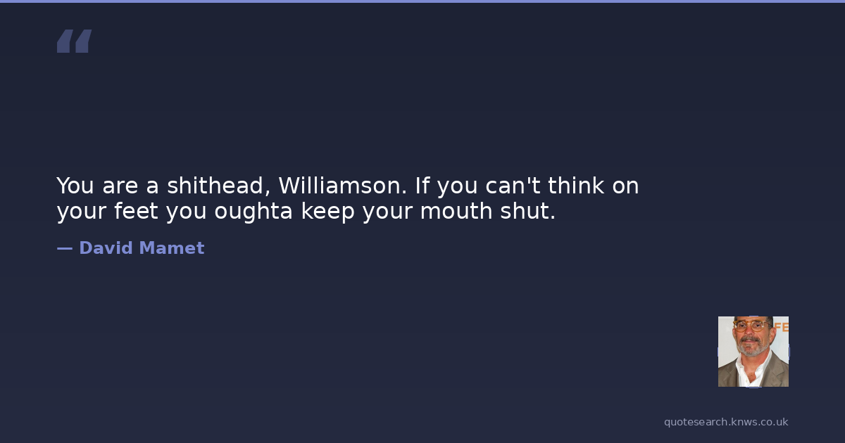 You are a shithead, Williamson. If you can't think on your feet you oughta keep your mouth shut.