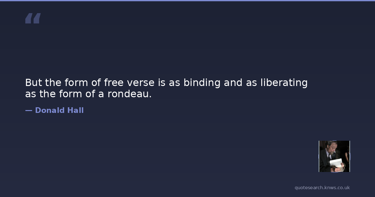 But the form of free verse is as binding and as liberating as the form of a rondeau.