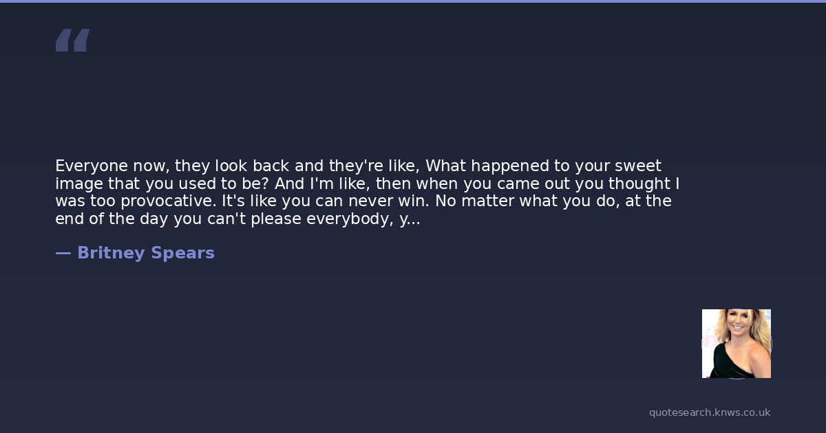 Everyone now, they look back and they're like, What happened to your sweet image that you used to be? And I'm like, then when you came out you thought I was too provocative. It's like you can never win. No matter what you do, at the end of the day you can't please everybody, you know. I'm not here to please...