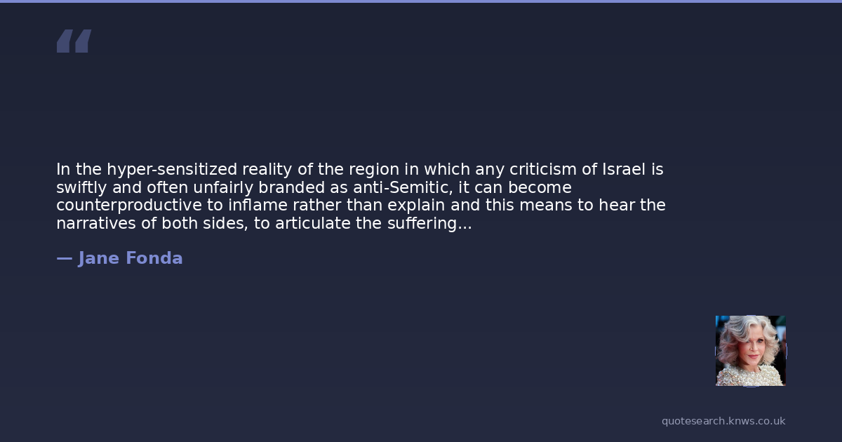 In the hyper-sensitized reality of the region in which any criticism of Israel is swiftly and often unfairly branded as anti-Semitic, it can become counterproductive to inflame rather than explain and this means to hear the narratives of both sides, to articulate the suffering on both sides, not just the Palestinians.