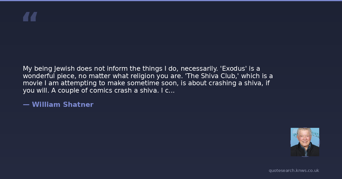 My being Jewish does not inform the things I do, necessarily. 'Exodus' is a wonderful piece, no matter what religion you are. 'The Shiva Club,' which is a movie I am attempting to make sometime soon, is about crashing a shiva, if you will. A couple of comics crash a shiva. I could have, I suppose, made it an Irish wake, but the shiva I was more familiar with.