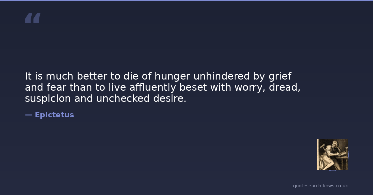 It is much better to die of hunger unhindered by grief and fear than to live affluently beset with worry, dread, suspicion and unchecked desire.