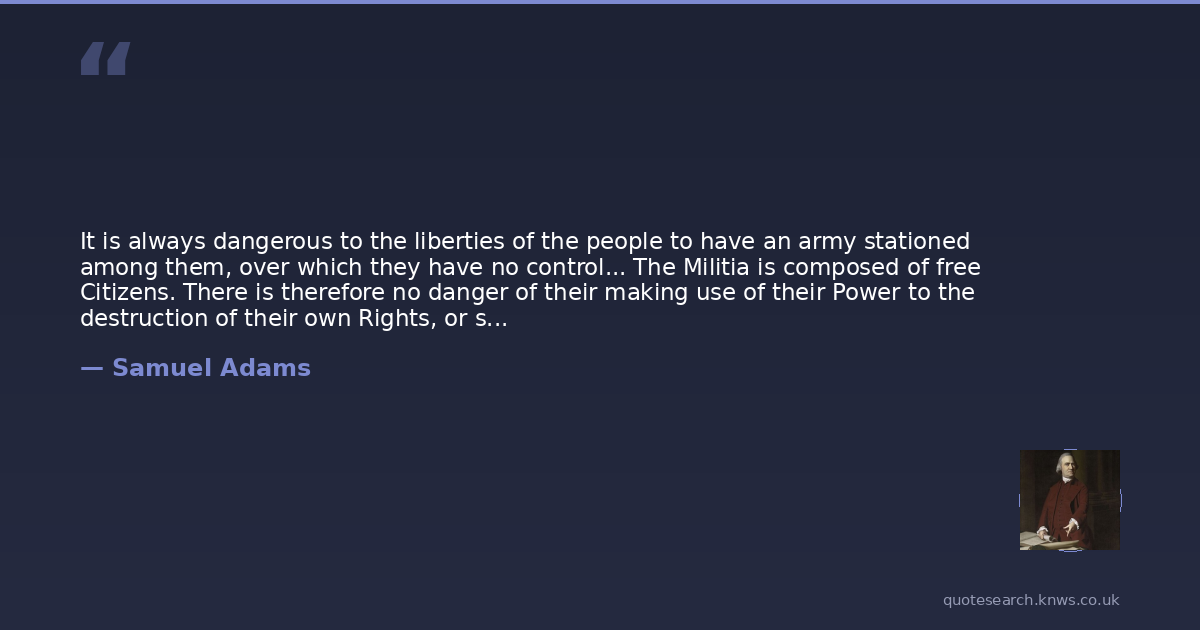 It is always dangerous to the liberties of the people to have an army stationed among them, over which they have no control... The Militia is composed of free Citizens. There is therefore no danger of their making use of their Power to the destruction of their own Rights, or suffering others to invade them.
