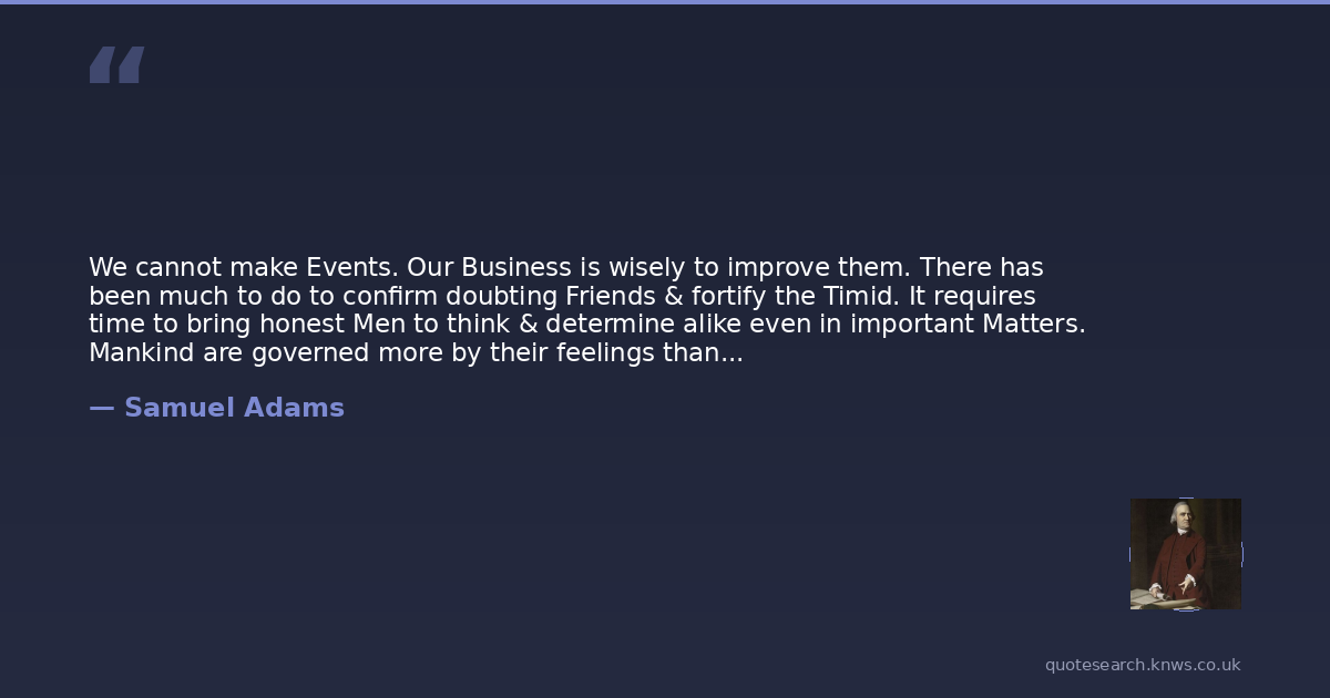 We cannot make Events. Our Business is wisely to improve them. There has been much to do to confirm doubting Friends & fortify the Timid. It requires time to bring honest Men to think & determine alike even in important Matters. Mankind are governed more by their feelings than by reason.