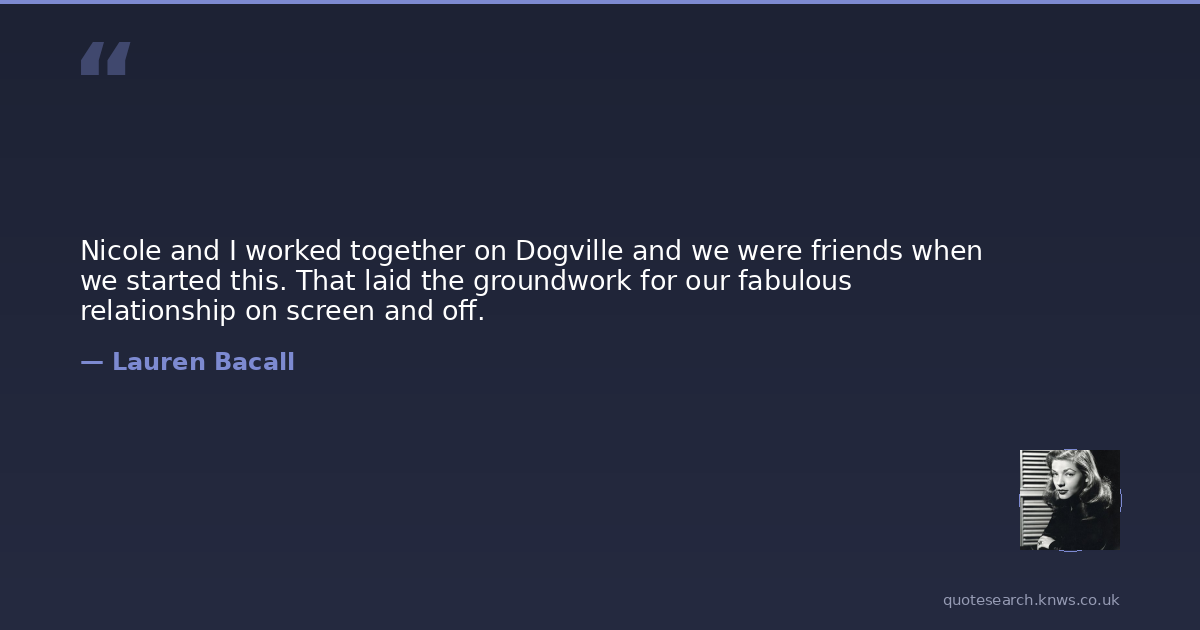 Nicole and I worked together on Dogville and we were friends when we started this. That laid the groundwork for our fabulous relationship on screen and off.