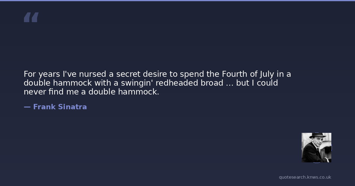 For years I've nursed a secret desire to spend the Fourth of July in a double hammock with a swingin' redheaded broad … but I could never find me a double hammock.
