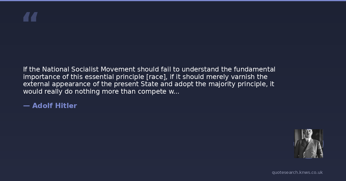 If the National Socialist Movement should fail to understand the fundamental importance of this essential principle [race], if it should merely varnish the external appearance of the present State and adopt the majority principle, it would really do nothing more than compete with Marxism on its own ground.