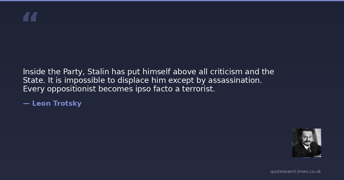 Inside the Party, Stalin has put himself above all criticism and the State. It is impossible to displace him except by assassination. Every oppositionist becomes ipso facto a terrorist.