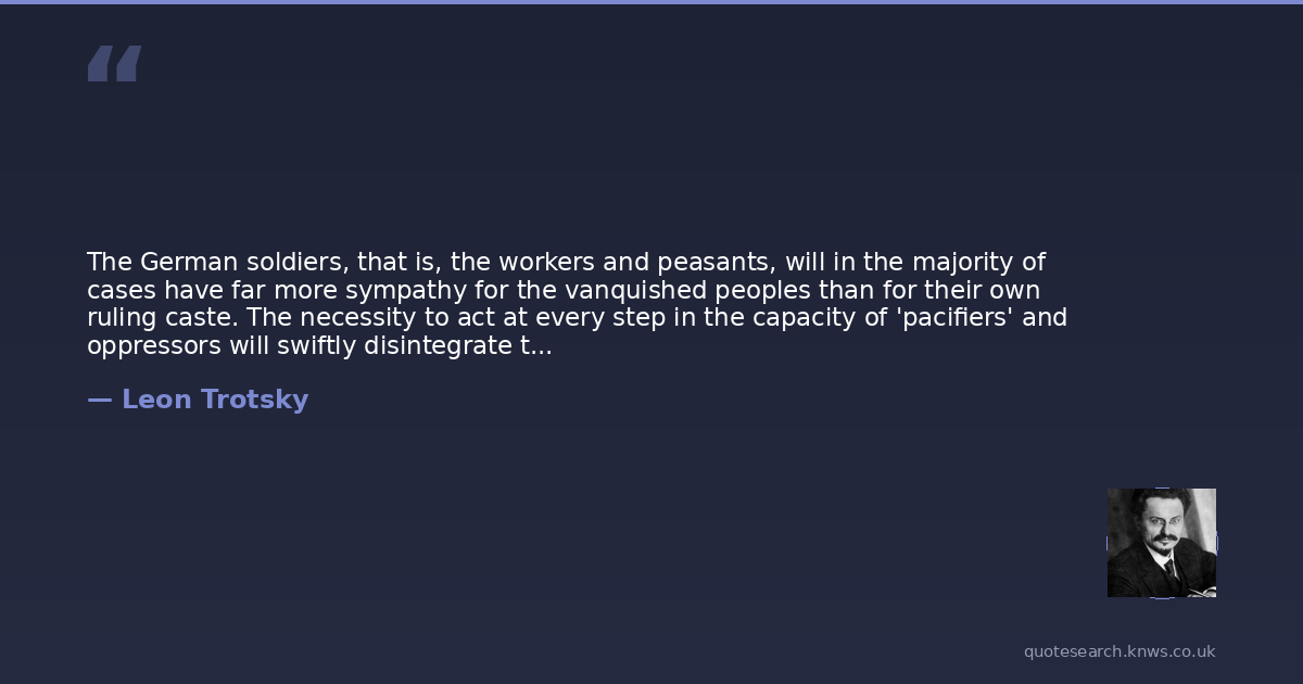 The German soldiers, that is, the workers and peasants, will in the majority of cases have far more sympathy for the vanquished peoples than for their own ruling caste. The necessity to act at every step in the capacity of 'pacifiers' and oppressors will swiftly disintegrate the armies of occupation, infecting them with a revolutionary spirit.