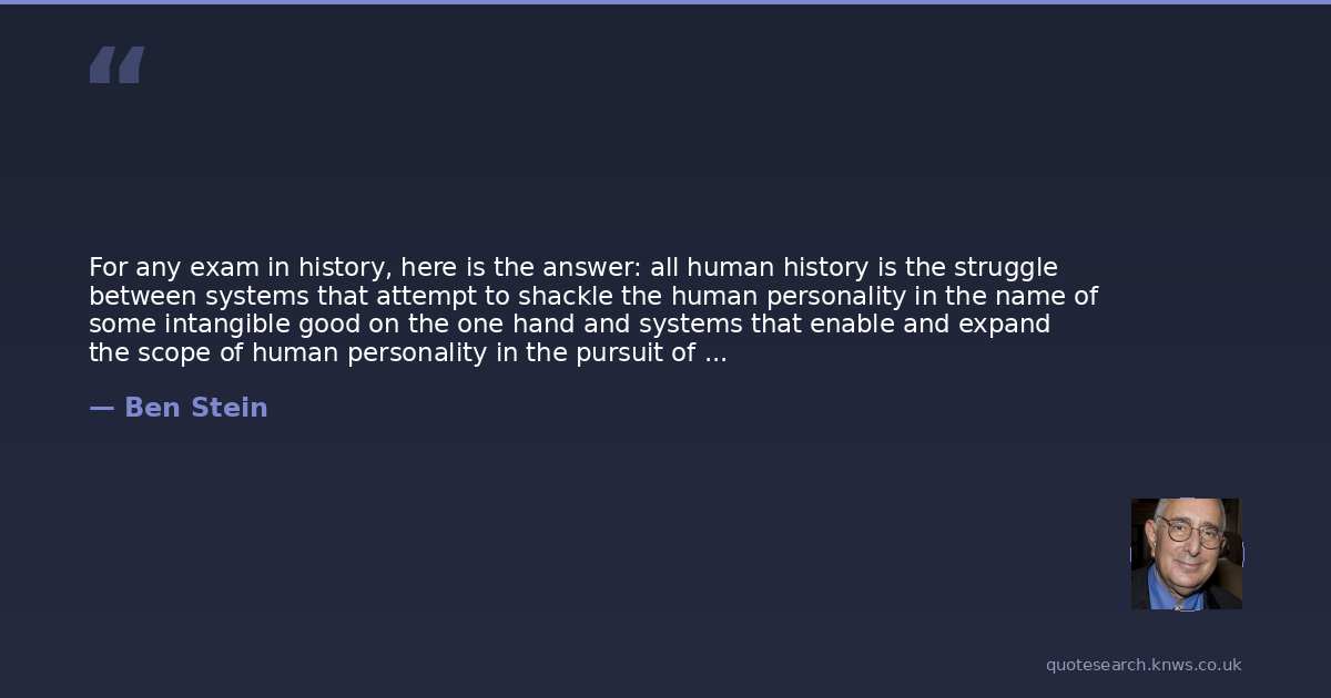 For any exam in history, here is the answer: all human history is the struggle between systems that attempt to shackle the human personality in the name of some intangible good on the one hand and systems that enable and expand the scope of human personality in the pursuit of extremely tangible aims. The American system is the most successful in the world because it harmonizes best with the aims and longings of human personality while allowing the best protection to other personalities.